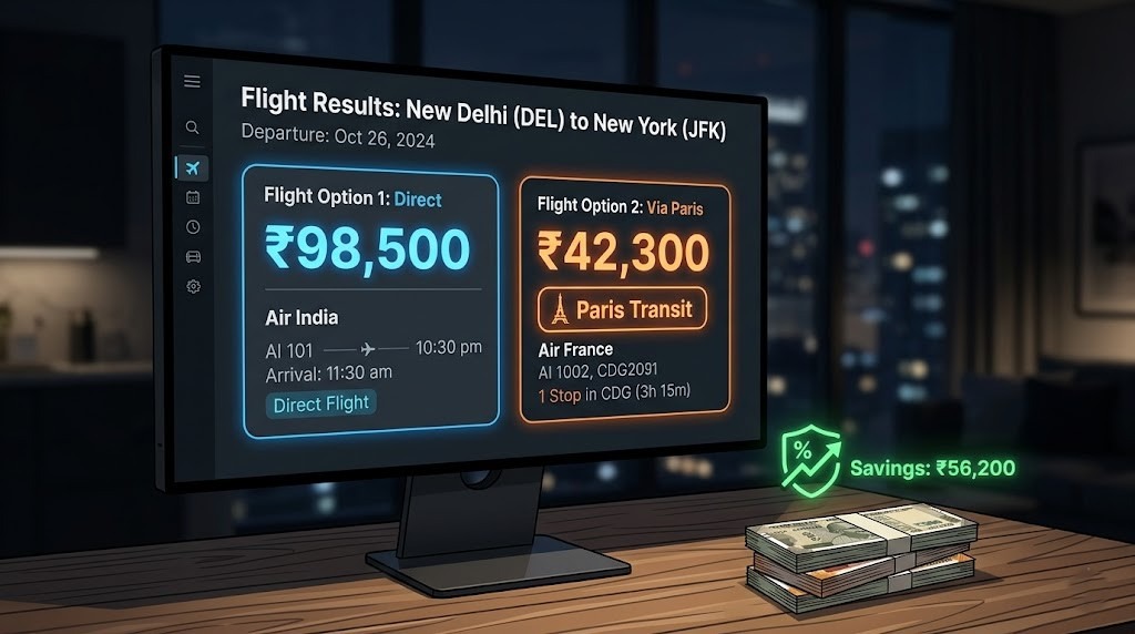 - Cost Gap: Paris layovers are often ₹20,000 to ₹30,000 cheaper than direct flights to the West.